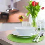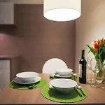 Irene lägenhet omfattar 9 rum. Denna lägenhet har också ett kaklat golv. Gäster kan använda badlakan, hårtork och handdukar.